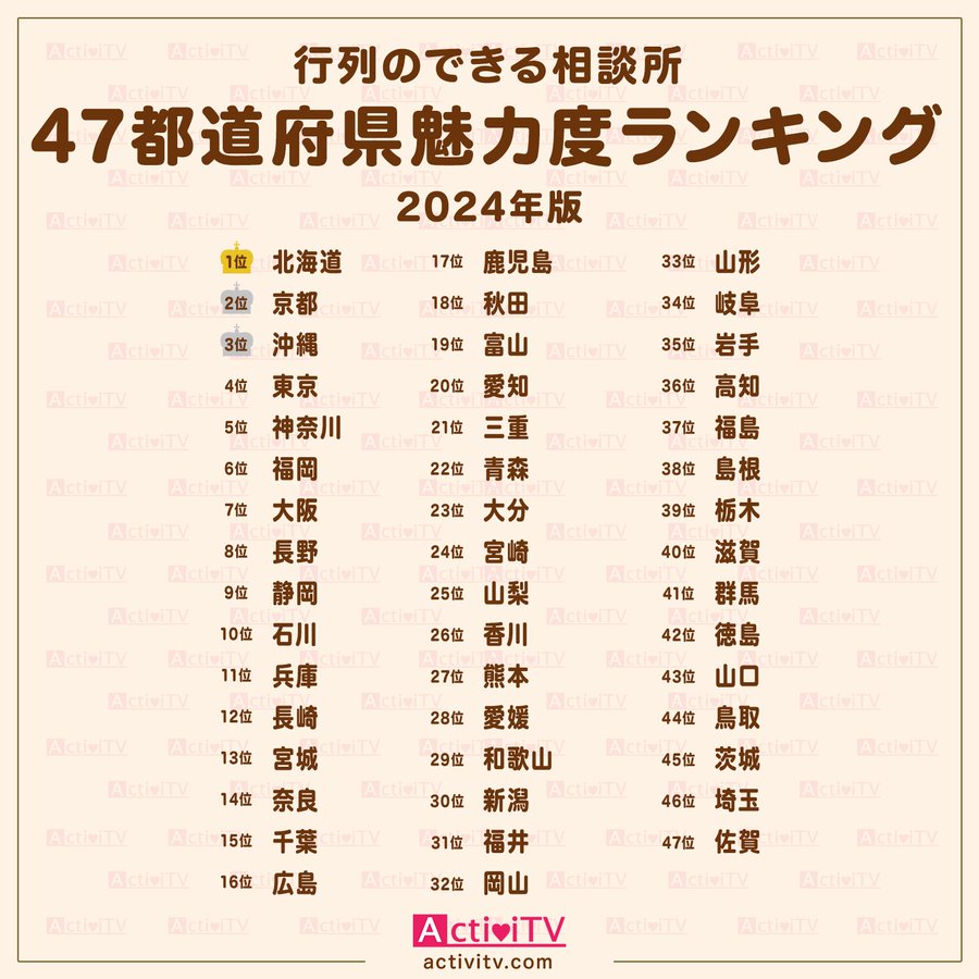 先日、行列のできる法律相談所で都道府県魅力度ランキングを紹介していました!